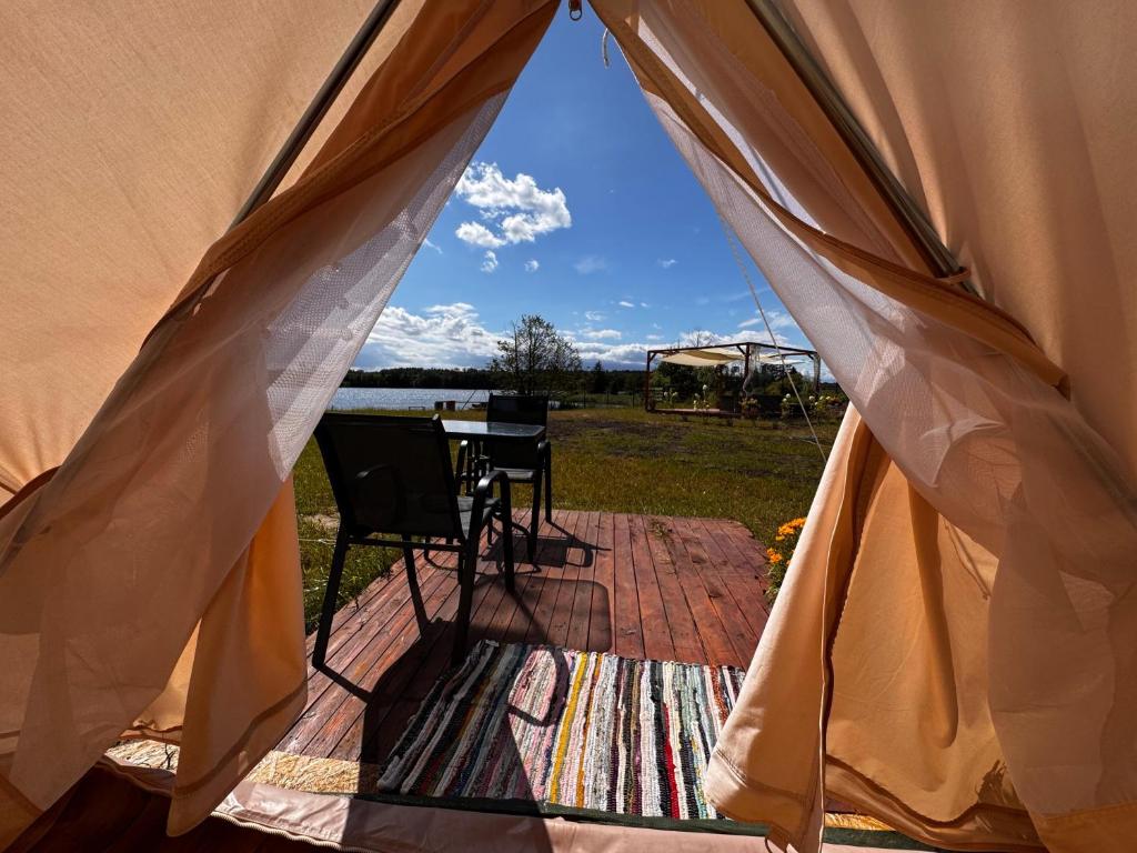 Komfortowy namiot glampingowy z widokiem na jezioro o powierzchni 28 m².