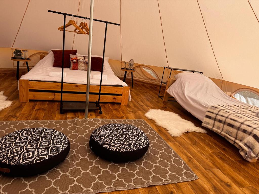 Przestronny namiot glampingowy z widokiem na jezioro o powierzchni 28 m².