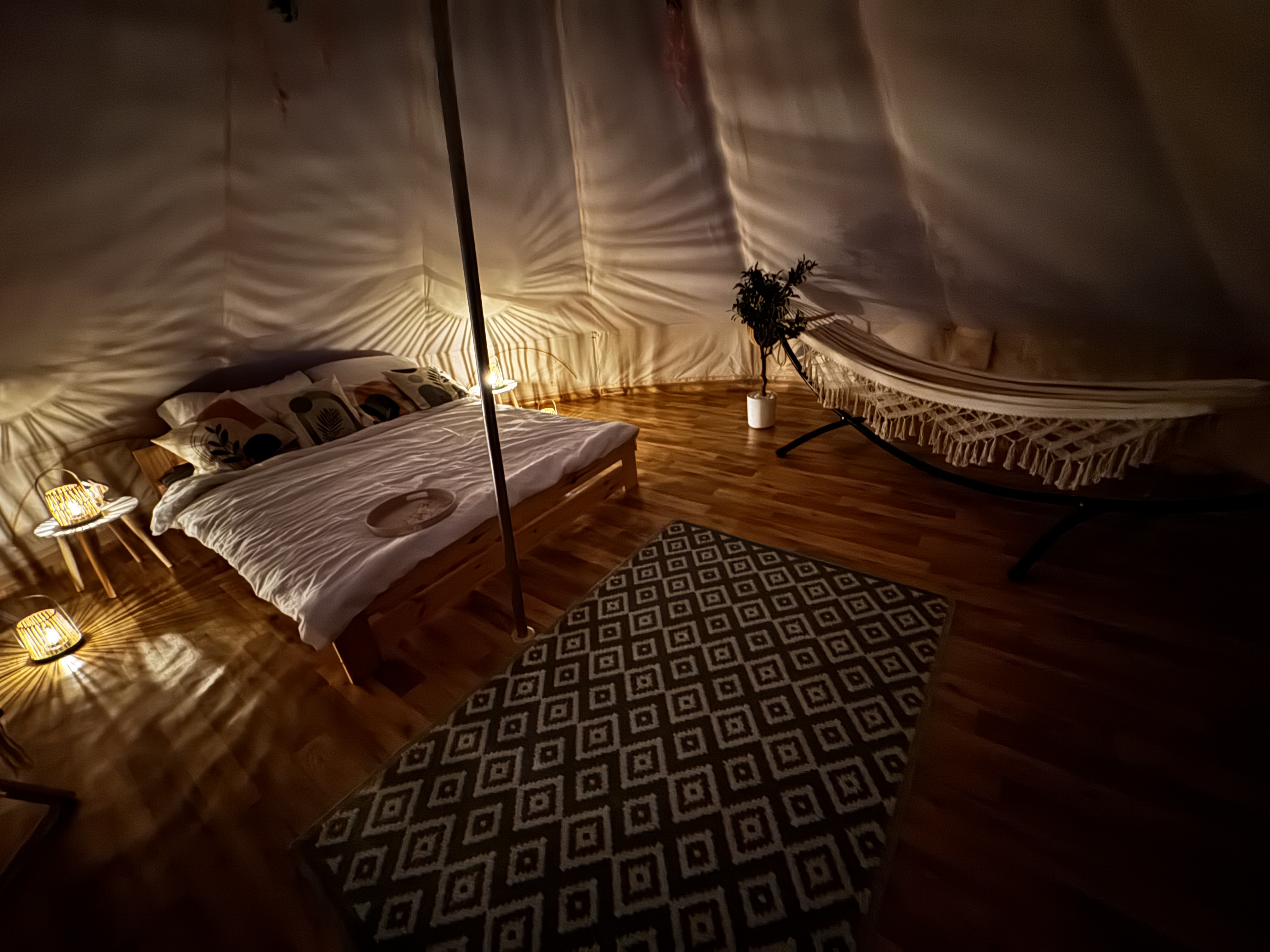 Nie czekaj dłużej! Stwórz niezapomniane wspomnienia z bliskimi, spędzając czas w naszym przytulnym namiocie. To idealne miejsce na relaks, rozmowy przy ognisku i podziwianie gwiazd.