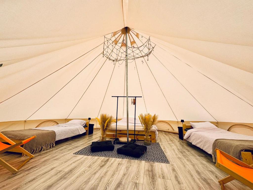 Przestronny namiot glampingowy z widokiem na jezioro o powierzchni 28 m².